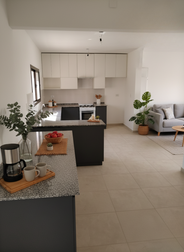 - Amplio living comedor con cocina integrada